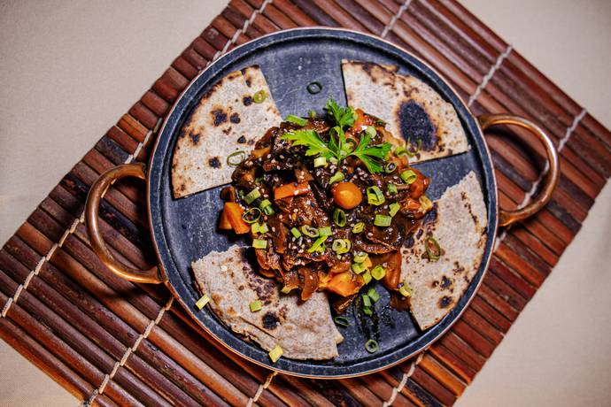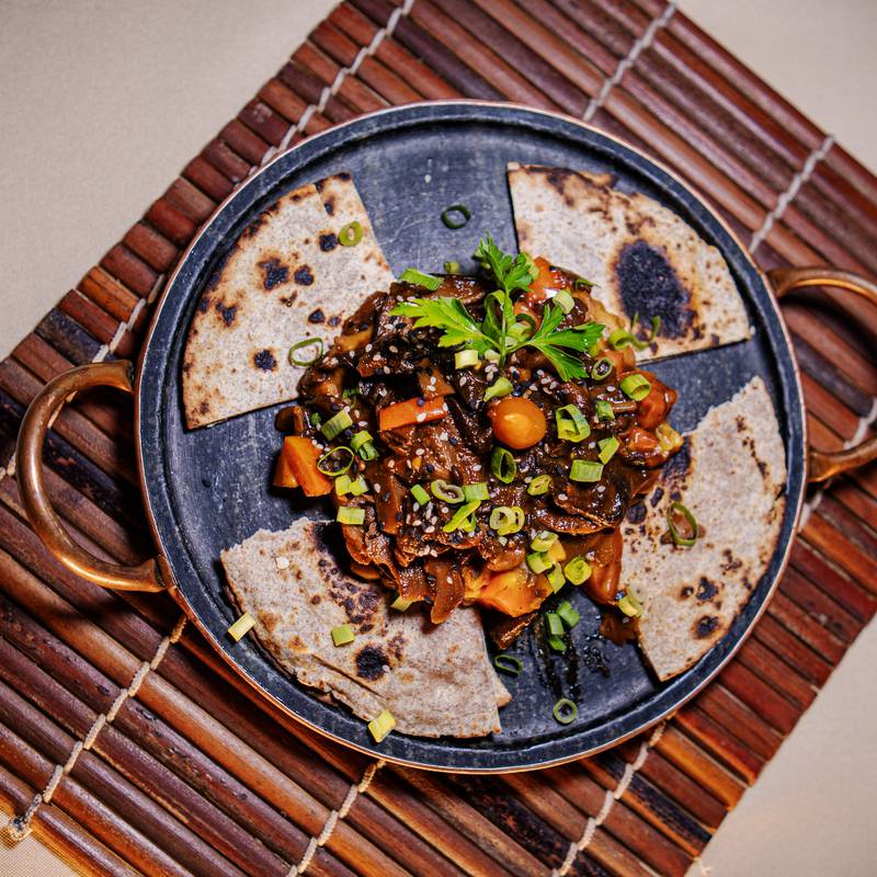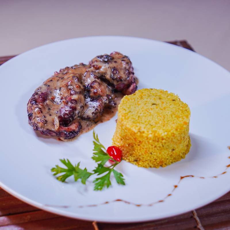 Preparado com epeciarias baianas, vietnamitas, Tailandesas e Chinesas, ao leite de coco e azeite de dendê, acompannha arroz e farofa.